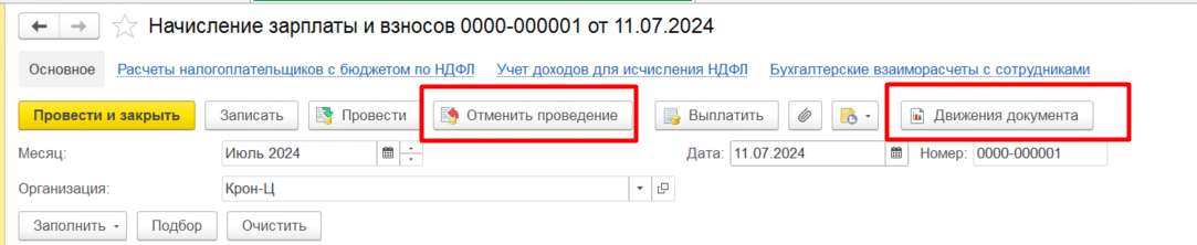 В новых версиях программы ЗУП КОРП команда Отменить проведение видна только по верхней кнопке Еще - Отменить проведение, что некоторым пользователям не нравится.