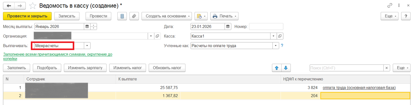 Лайфхак №2. Как сформировать общую ведомость на различные межрасчетные выплаты